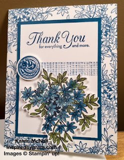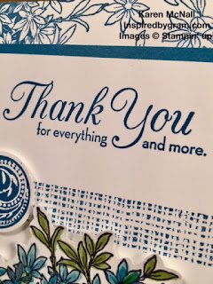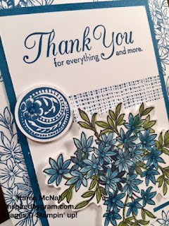 I cased this card from Deb Valder, but changed it up so that the flowers on the cardbase were stamped using one of the In-Colors, Dapper Denim. I really like how this card turned out. It can be used for many different occasions; birthday, just because, sympathy, and more.
