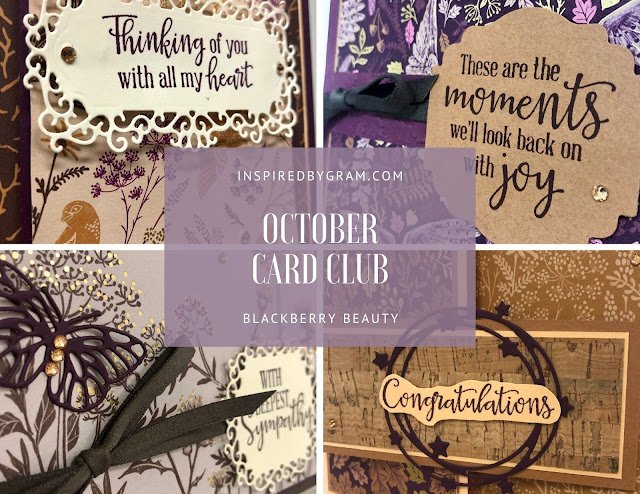 Fall is here and I’m so excited to show you my October Card Club using really gorgeous paper called Blackberry Beauty Specialty Designer Series Paper.