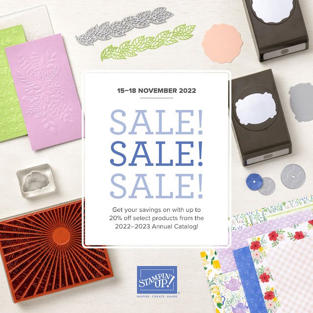 Create more by spending less during theSeasonal Sale!Between November 15 and 18, 2022, select products from the 2022–2023 Annual Catalog will be on sale with the following discounts::10% off all punches15% of all stamps (Host stamp sets are not included in this sale)20% off all dies20% ... Read More about Seasonal Sale and Ordering Special