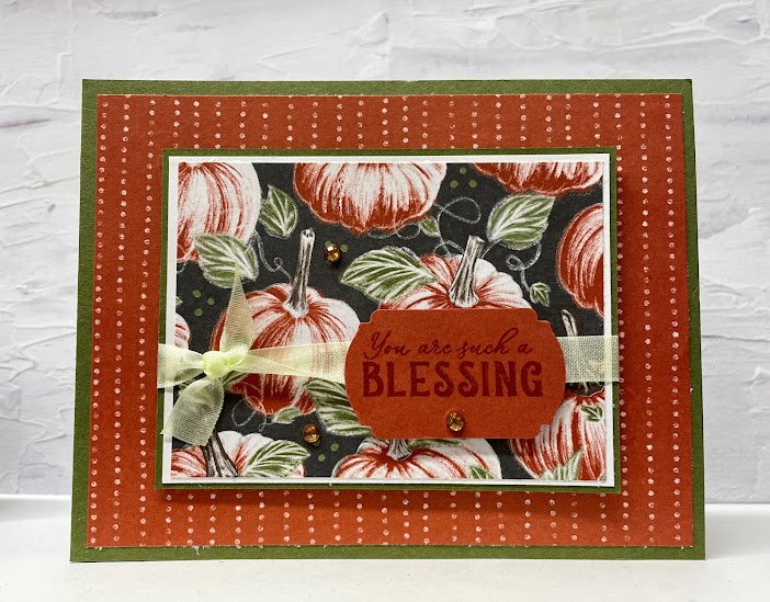 It's that time of year when the evenings get cool and the smell of Fall is in the air. What better time to create cards using the Hello Harvest Bundle coordinated with the Rustic Harvest Designer Series Paper.Fall colors of Mossy Meadow and Cajun Craze. A softness from the Soft Sea ... Read More about Hello Harvest “You are such a BLESSING”