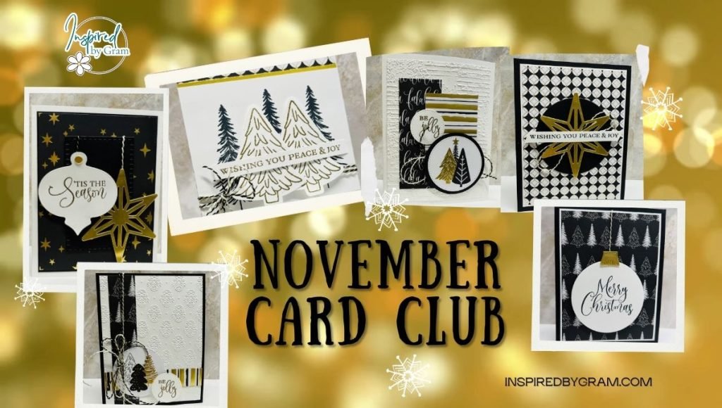 For November, we will be making 12 cards, two of each design, using Ornamental Christmas along with Specialty Designer Series Paper called Modern Christmas! These cards are beautiful in person and sure to be loved by you and your family.