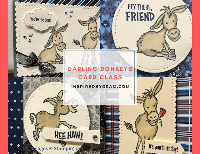 For January, I am offering a wonderful class utilizing the Darling Donkeys Stamp Set. I will be showcasing new products from the January-June 2021 Mini Catalog along with some Annual Catalog products as well.